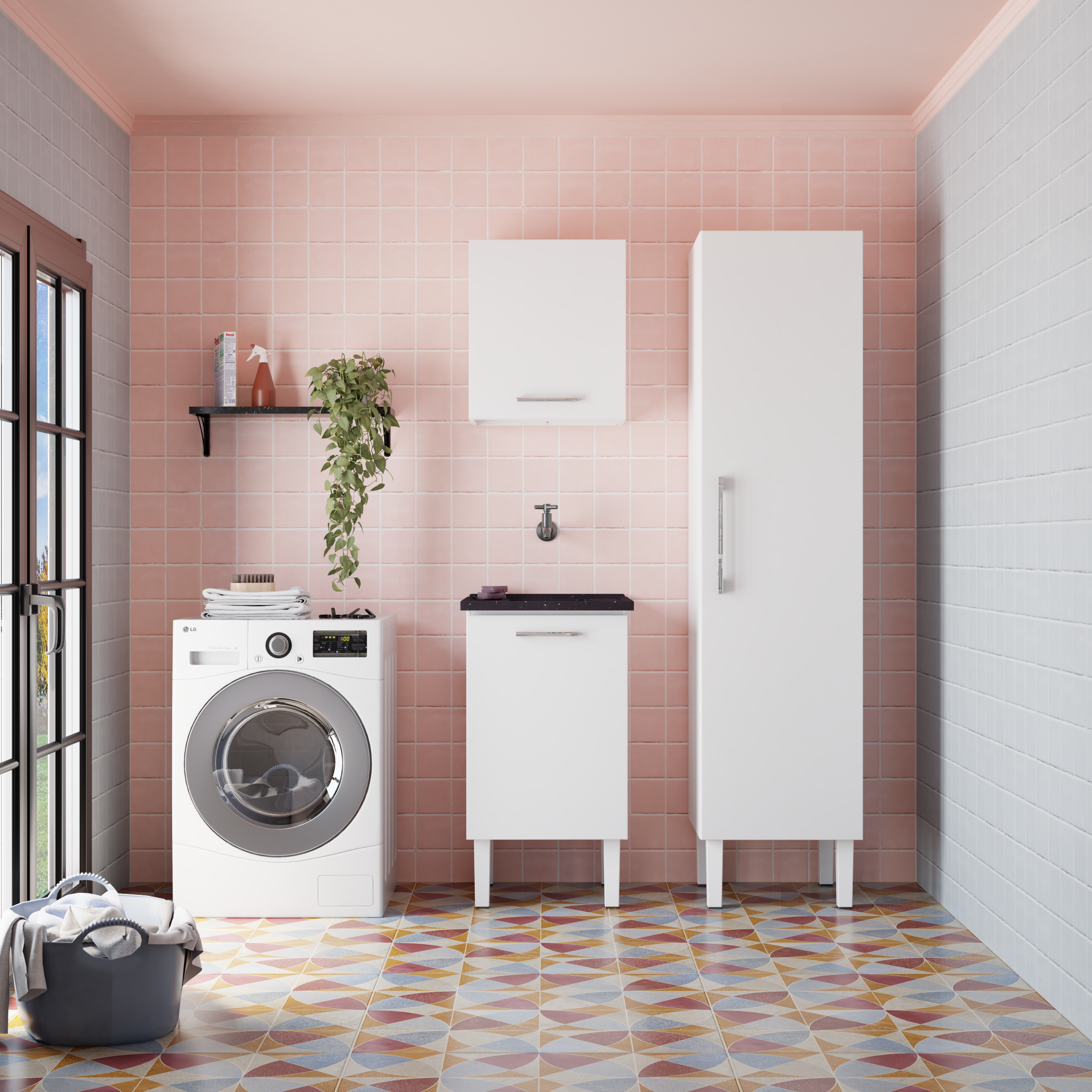 A linha de armários em aço para lavanderia, da Cozimax, proporciona qualidade e praticidade, fabricado em aço eletrogalvanizado com garantia de 5 anos, protegido por pintura em pó eletrostática, possui portas com design moderno e cantos retos, puxadores em ABS com acabamento metalizado.